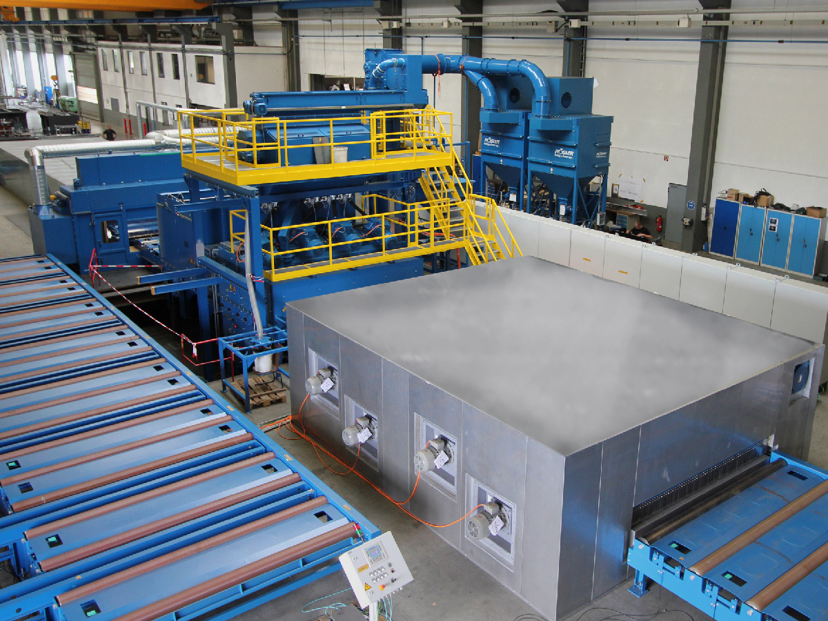 A complete shot blasting and painting production line consists of a single adaptive transmission system, pre-heater, shot blasting machine, painting shed and post-treatment dryer. The transmission system, as well as roller conveyor belts, traveling furnaces and cross transmission lines, can be selected according to specific needs. The gas-fired preheater unit can handle wet and even ice-covered materials stored externally. The spray layer sprayed in the spray shed can be dried online through the post-dryer device, so that the workpiece can be transported immediately for further processing. The final drying process uses the energy discarded from the pre-heater to reduce energy consumption.