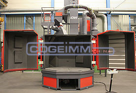 TA-S rotary indexing satellite turntable shot blasting machine (using shot blasting technology), the shot blasting machine is equipped with three satellite-type rotary tables (there are a variety of turntable specifications to choose according to needs), and each satellite table has a diameter of 1000 mm. The satellite worktable is integrated with the main rotary table, with a diameter of 2500 mm. Once the workpiece is placed on the turntable, it can be shot blasting by the high-performance "Hurricane" shot blasting wheel.